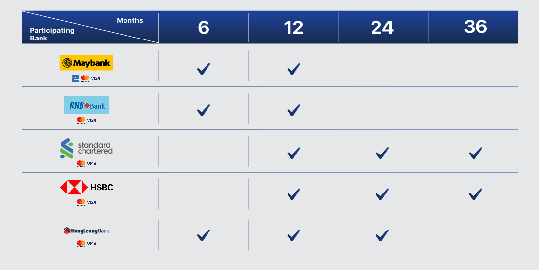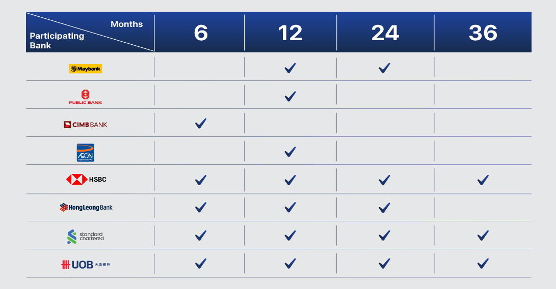 (I) Maybank & RHB - RM500 (6 months' instalment) & RM1000 (6 months/12 months' instalment).