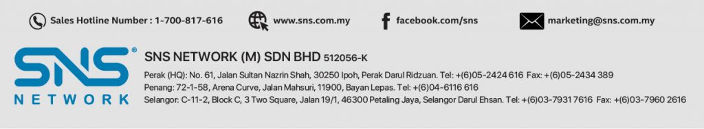Click one of our representatives below to chat on WhatsApp or send us an email to online@sns.com.my
